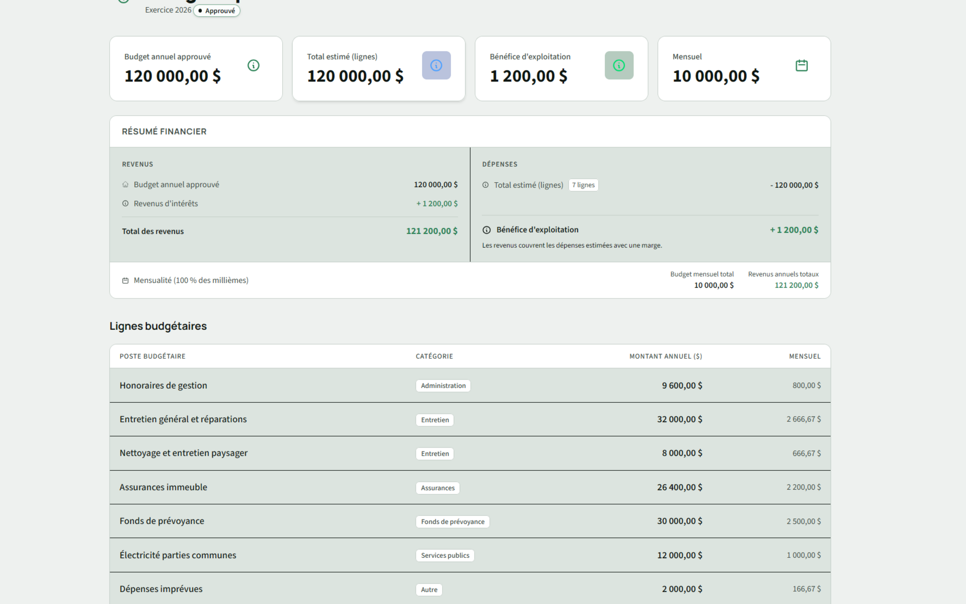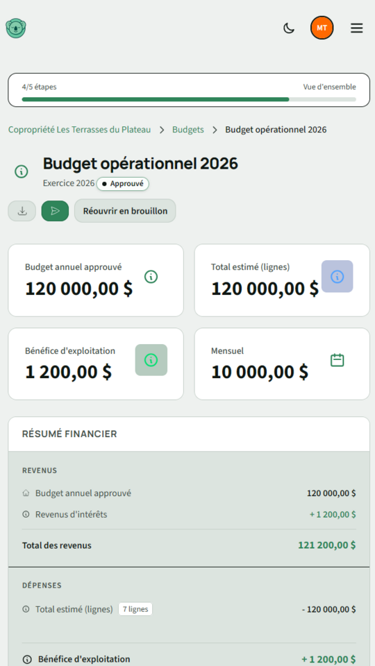 Gérez le budget de votre syndicat, suivez les dépenses et générez les appels de fonds. Une vue claire des finances pour tous les copropriétaires.