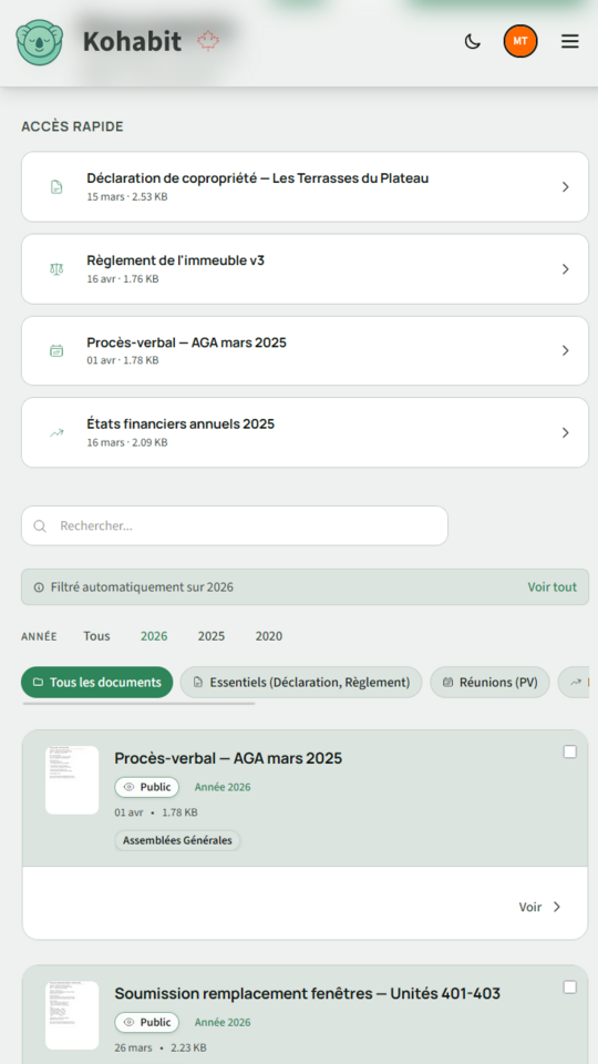 Rejoignez les premiers syndics à façonner Kohabit. Gratuit, hébergé au Canada, sans engagement.